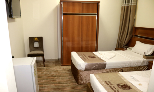 غرفة توأم تحتوي على سريرين مجهزة بكافة وسائل الراحة وتتميز بتصميمها الأنيقة لتوفير أجواء من الهدوء والاستجمام للنزلاء