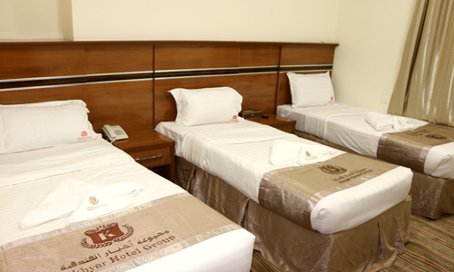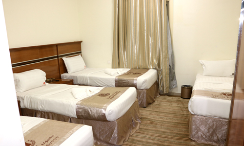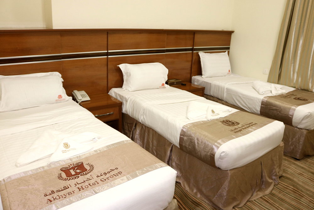 غرفة تحتوي على 3 أسرة مجهزة بكافة وسائل الراحة وتتميز بتصميمها الأنيقة لتوفير أجواء من الهدوء والاستجمام للنزلاء